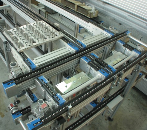 The roller chain is suitable for large, heavy work piece pallets. The accumalation of rollers doesn't only reduce the accumalation pressure on stoppers, but also enables a quick return to the transport speed from workstations.