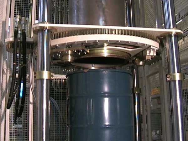 Pinette Emidecau Industries offers a compacting hydraulic press for nuclear waste with automatic tank clamping, which is already being used in France for their nuclear power plants.